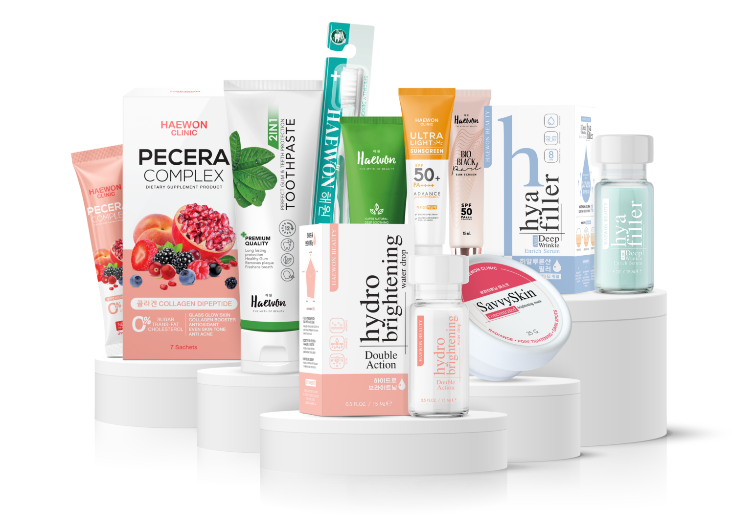 ซึ่งมีจุดเริ่มต้นที่ต้องการพัฒนาผลิตภัณฑ์เพื่อแก้ปัญหาทุกสภาพผิวและปัญหาสิวอย่างตรงจุด ต่อมามีการขยายฐานการผลิต และกลุ่มผลิตภัณฑ์ที่หลากหลายมากยิ่งขึ้น ออกสู่ตลาด และเป็นที่รู้จักกันดี ในผลิตภัณฑ์ที่มีชือว่า ยาสีฟันแฮวอน ( ผลิตภัณฑ์ดุแลช่องปาก ) ที่ได้รับการยอมรับจากผู้ใช้จริง โดยมียอดขายมากผกว่า 4,000,000 หลอด ภายใน 3 ปี และ ผลิตภัณฑ์ Hya filler หรือเป็นที่รู้จักใน ฟิลเลอร์แบบทา ที่เรียกได้ว่า เป็นนวัตกรรมฟิลเลอร์แบบทาเจ้าแรกและเป็นสูตรเฉพาะของแฮวอนคลินิก